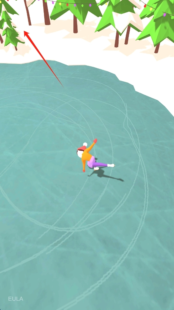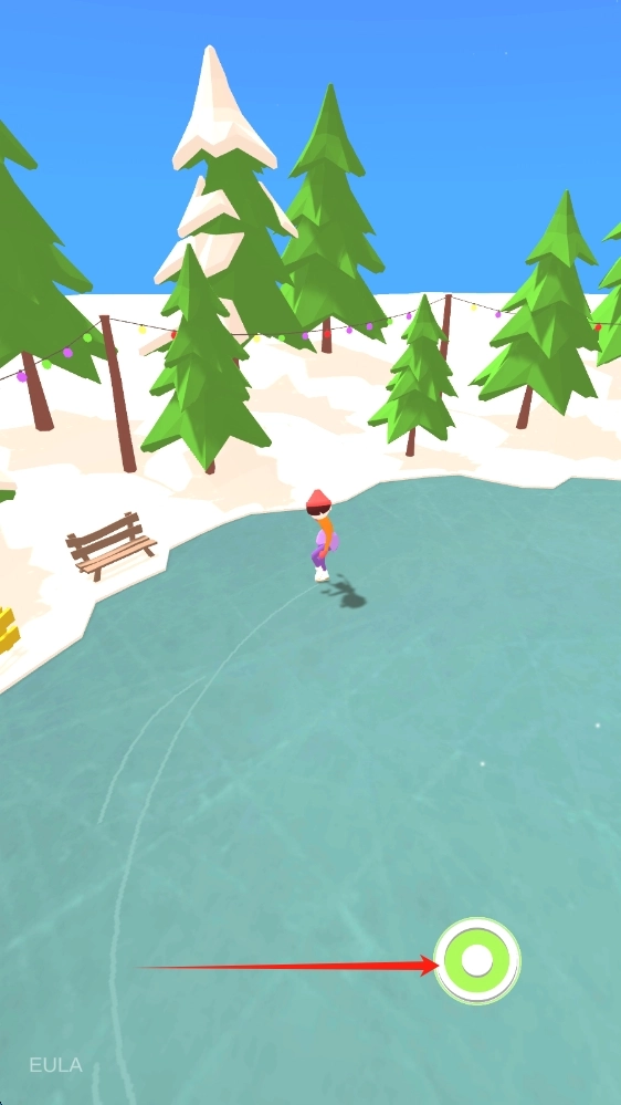 在冰面场景里,点击绿色按钮就能操控角色启动滑冰,在雪景之中开启趣味滑行,还可以点击屏幕让角色做出各种动作。
