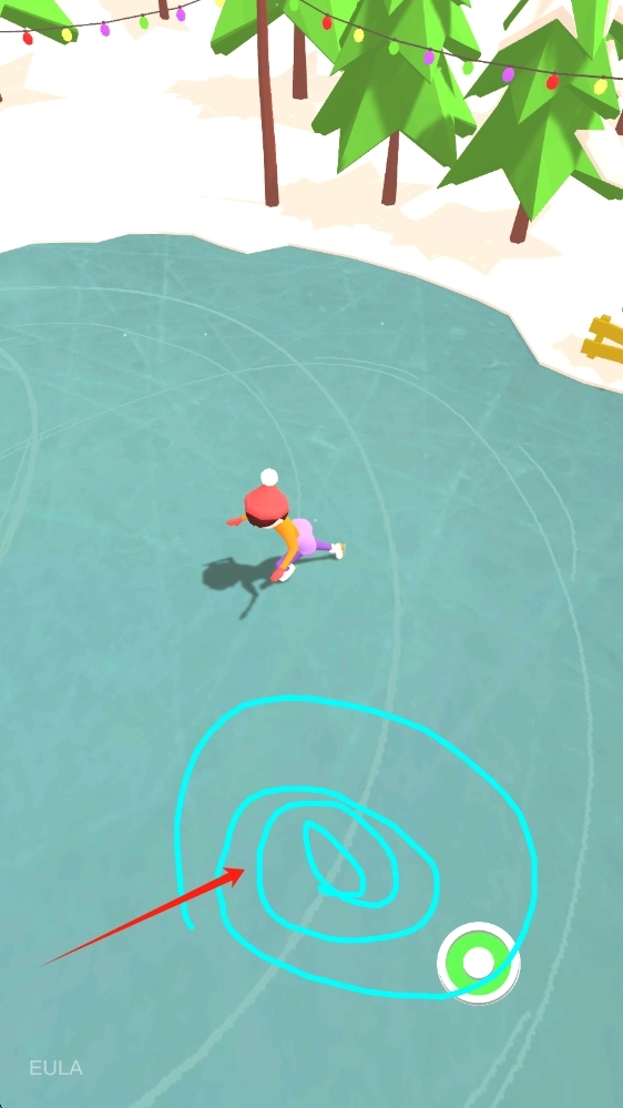 滑冰时,沿着蓝色轨迹描绘图案,把控好操作节奏,完成冰面的绘画任务,通过划线来移动。
