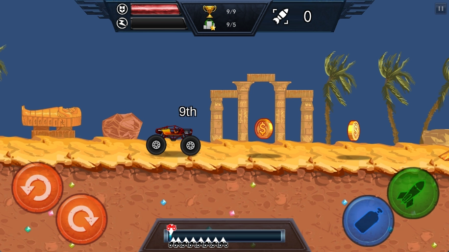 刺激狂野赛车是一款驾驶竞速游戏。游戏采用经典的横板操作方式,玩家将解锁各种各样的赛车以及地图场景,玩家要做的就是驾驶车辆竞速前进,保持车辆平稳前进,尽可能保持车辆,还可以发射武器对敌人造成阻碍,为自己创造可以超越的机会。游戏完善的车辆改装系统,各种各样的武器和零件都能解锁使用,打造专属于自己的战车。