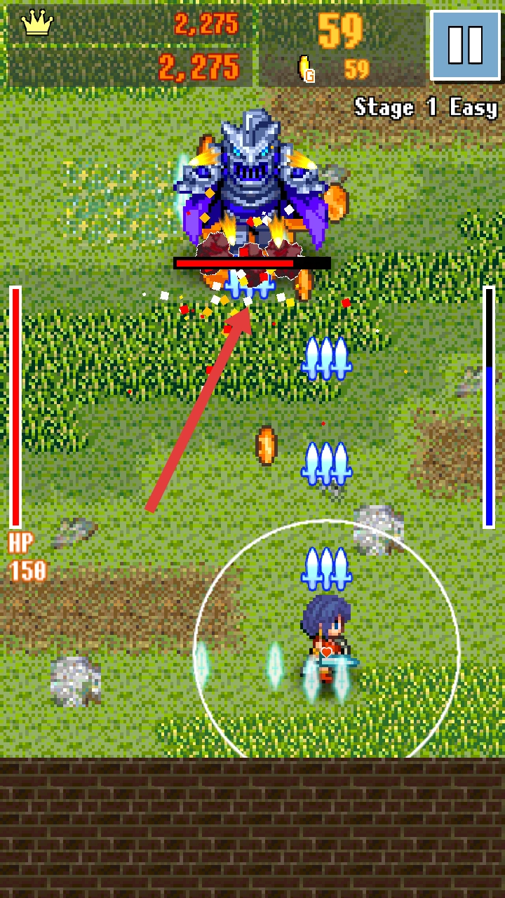 在前期把所有小怪都清理完毕后,到了后期就得集中全部力量去攻击那个巨型BOSS,只有把它打败,才能顺利通过Stage1Easy这一关卡。
