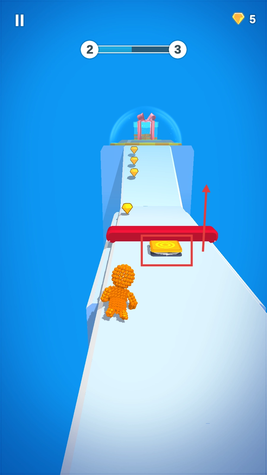 引导像素小人收集路上的钻石,再靠近终点位置的礼物盒,打开瞧瞧里面藏着什么惊喜吧。