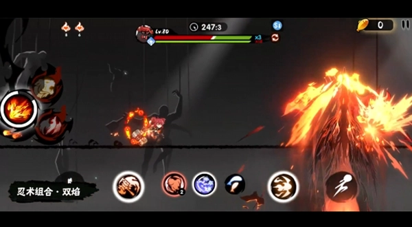 在忍术一式和二式阶段,可选择交替释放[神炎之体]与[冥焰之体]形态;进入三式阶段后,忍术便会展现为——双焰·三式·凤烈凰燃。