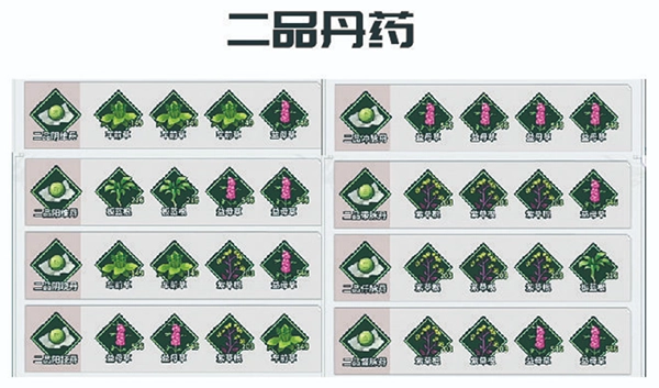 二品经验丹:金银花,虎耳草,龙胆草,仙鹤草