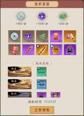 这里是各类资源的核心产出地,为途经的城池任命太守后,即可解锁城池的额外掉落奖励。(挂机时长存在上限,别忘了及时领取呀)