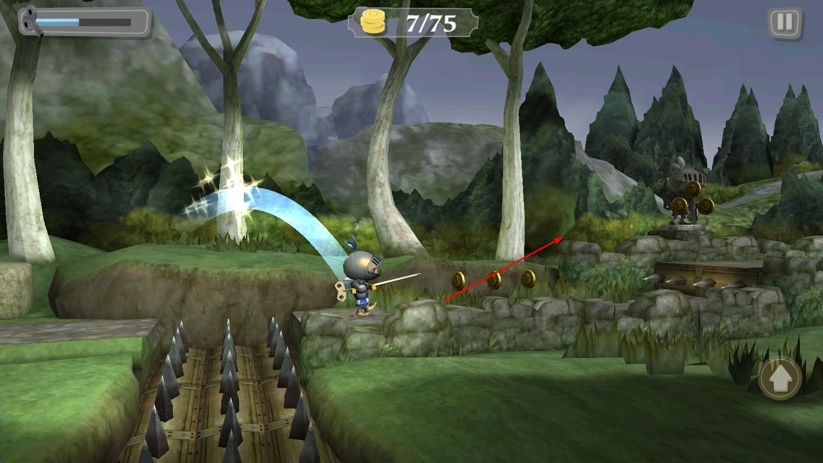 宝物收集玩法:在关卡的隐蔽之处进行探索,收集钻石之类的宝物,以此考验你的探索能力。这些收集到的资源可以用来解锁装备和新场景,让你的冒险体验更加丰富,也能带来满满的成就感。