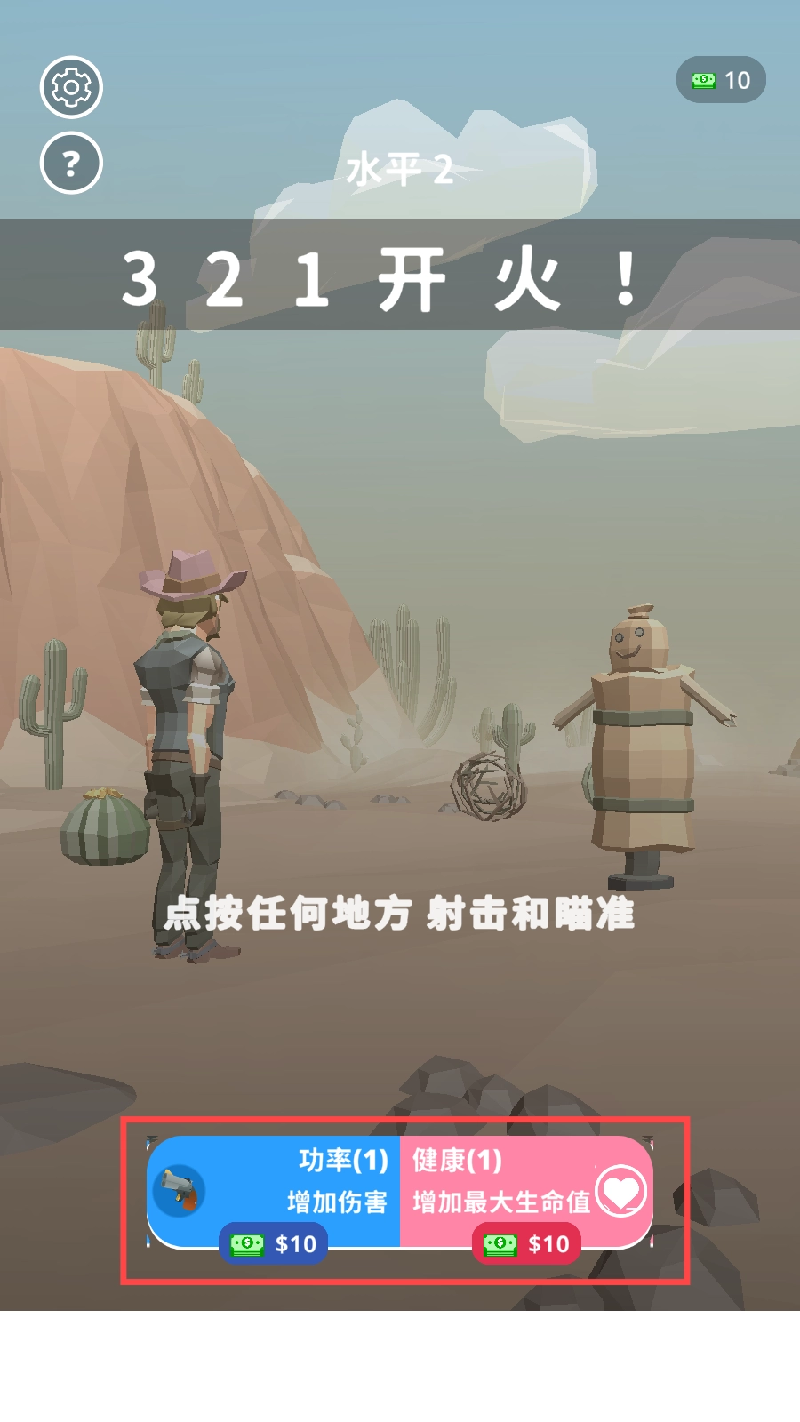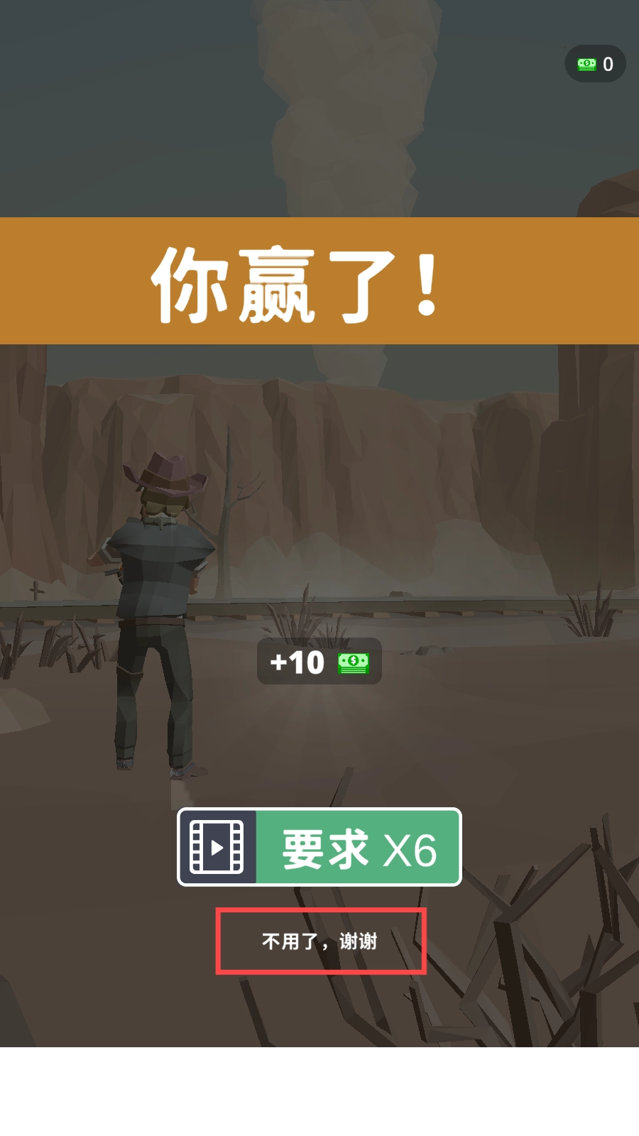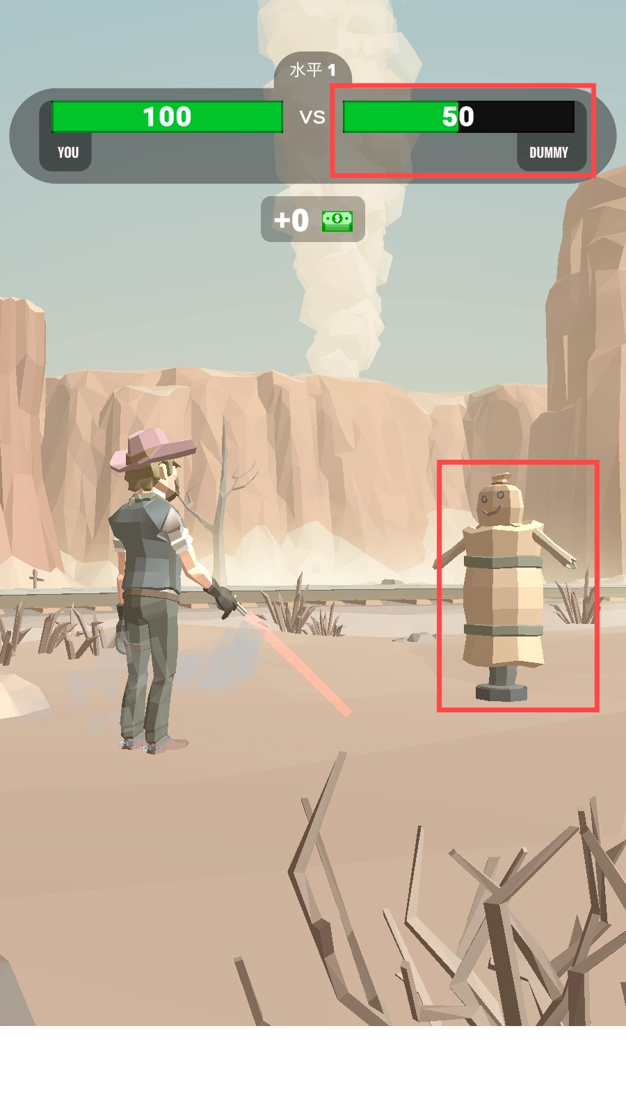 牛仔对决玩法:玩家将化身西部牛仔,和敌人进行一场紧张刺激的快节奏对决。你需要在极短时间内精准开枪击败对手,还要灵活闪避敌人的攻击,这非常考验你的反应能力。