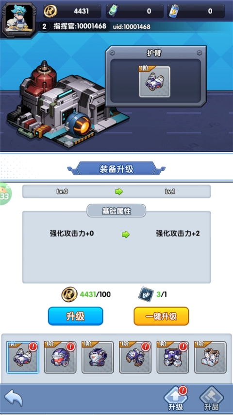 升级各种装备,强化攻击力。
