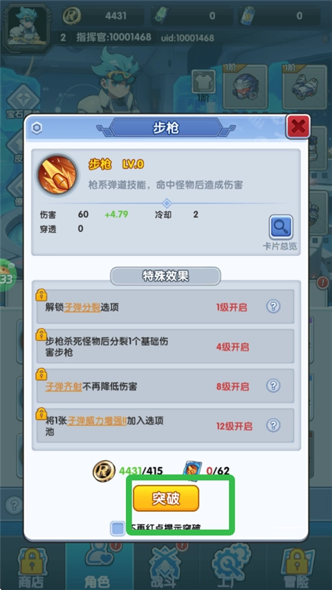 玩家可突破角色技能,增强其威力。