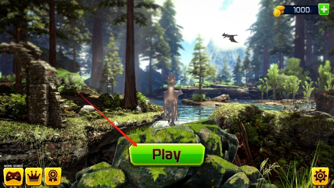 在游戏启动界面,点击Play按钮,就能开启恐龙射击的冒险之旅,进入游戏。