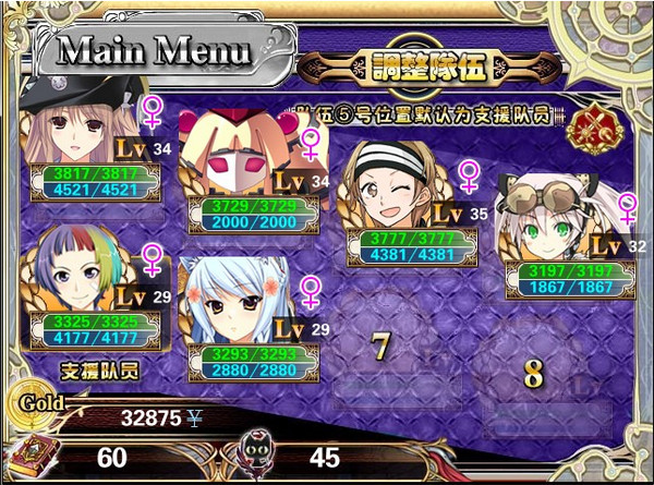 队伍调整界面,当队员数量超过5人的时候,第五位队员会默认为战斗支援队员,支援队员一样可以拿全部经验,而6.7.8不上场的队员可以拿50%经验