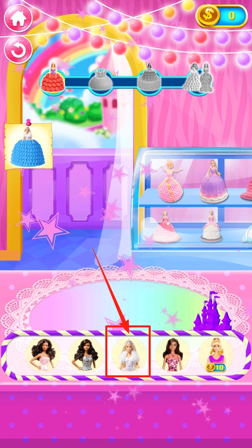 请点击下方的角色选项来选定制作对象,在角色栏里选中你想要的目标娃娃,这样就能开启蛋糕定制流程,进而一步步推进制作步骤。