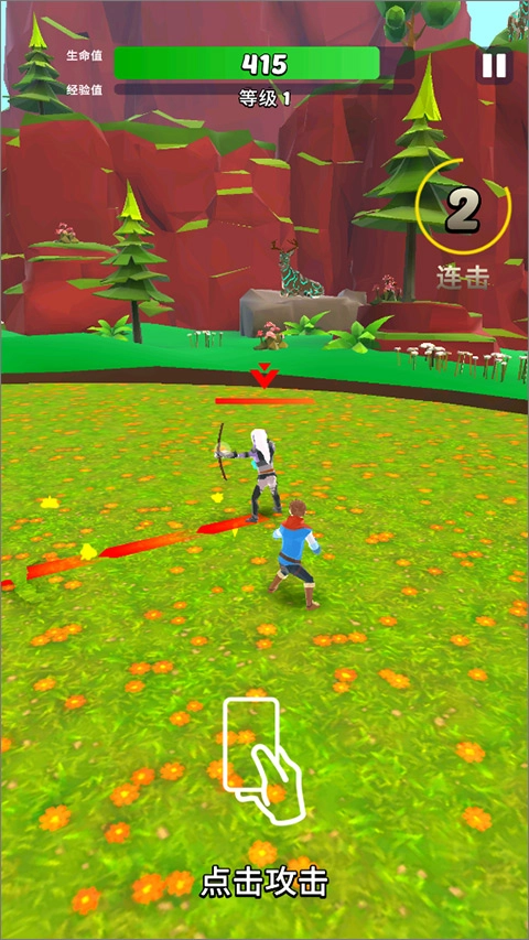 玩家换上战斗服装后就能进入第一关,点击对面的敌人就能对其发起攻击。