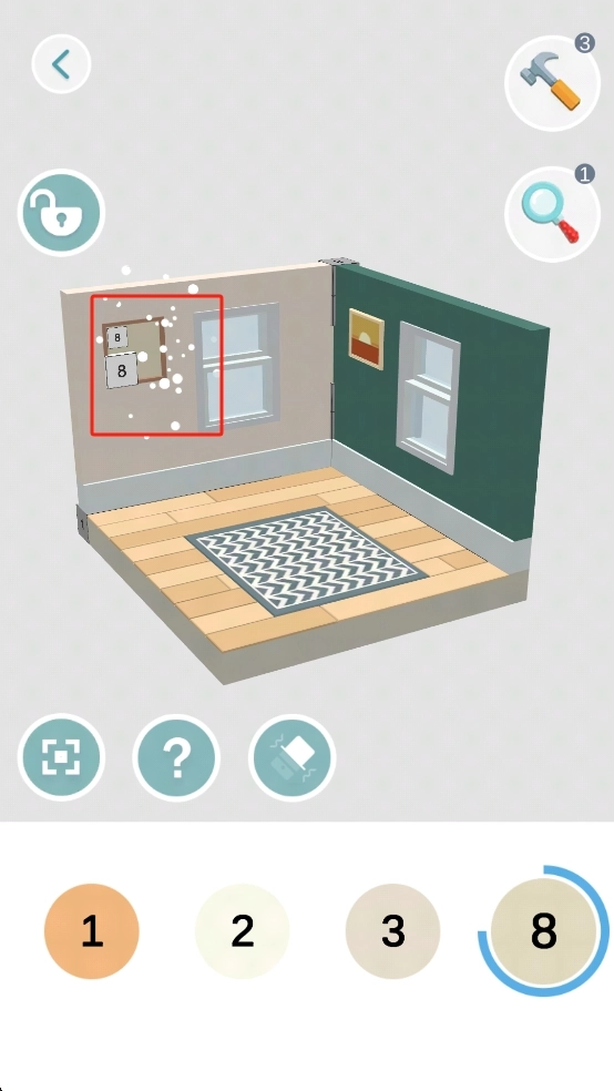 找到标有数字8的墙上门牌,再结合下方带有数字8的道具,点击进行互动,就能解锁房间里的隐藏内容,从而推进解谜进程。