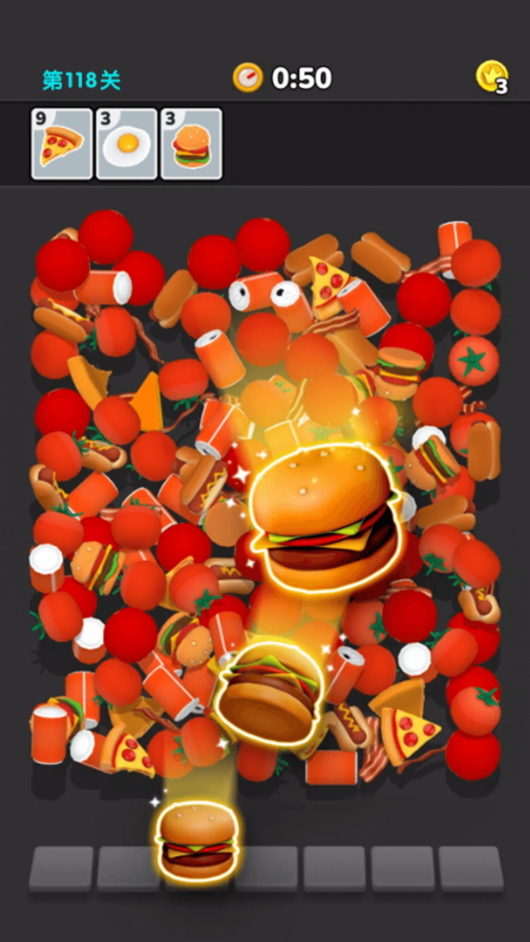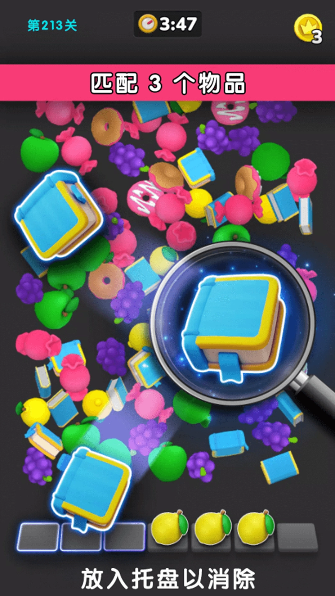 根据玩具的分布情况灵活选择,只要收集满三个就能进行消除
