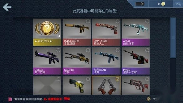 游戏内的开箱物品概率和现实情况一致,玩家能够有机会获得极为稀有的刀具与手套。
