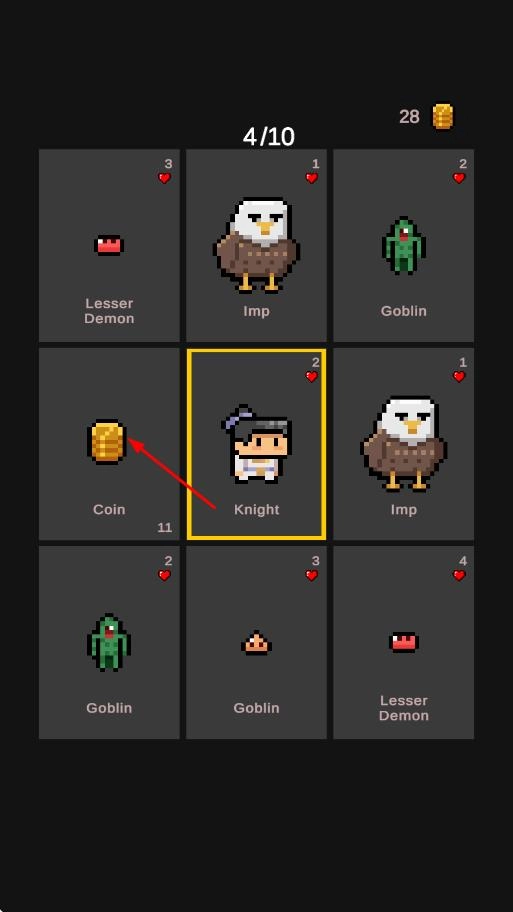遇到敌人时,通过翻牌来决定是攻击、防御还是使用技能,再依据敌人的特性来搭配相应策略,击败敌人后就能获得金币和装备,以此提升自身实力。