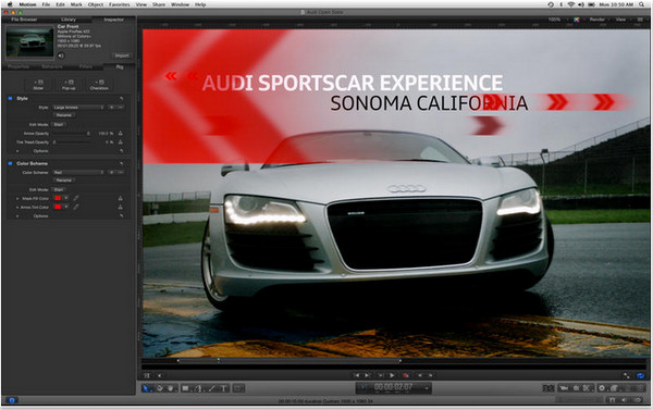 经过精心设计的 Motion 界面,能让 Final Cut Pro 剪辑师们轻松上手。它拥有单窗口布局,专为 MacBook Pro 的 Retina 显示屏增强的功能,双显示器支持,重新设计的图标以及有助于感知色彩的暗色外观。许多滤镜现在还具有屏上控制按钮,便于你直接进行特效操纵。而编辑关键帧现在也更加简便易行,因为在全新视图中,关键帧编辑器就置于时间线下方。
