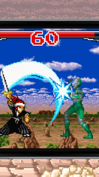 采用16-bit复古像素画风,精心复刻奥特曼系列中的经典名场面,佐菲的M87光线、赛罗的头镖攻击等标志性技能,都以像素动画的形式华丽展现,满满都是怀旧氛围。2、迪迦的形态切换、赛文的头镖操控、泽塔的勋章组合——每位奥特曼都拥有3到5种专属技能,需要通过“轻击+重击+滑动”的操作组合来触发特殊连招。3、在场景里可以拾取建筑残骸进行投掷,也能借助高楼跳跃发动空中必杀技。部分地图中隐藏着太阳能量补给点,当角色处于濒危状态时,会触发奥特曼经典的红灯反击机制。