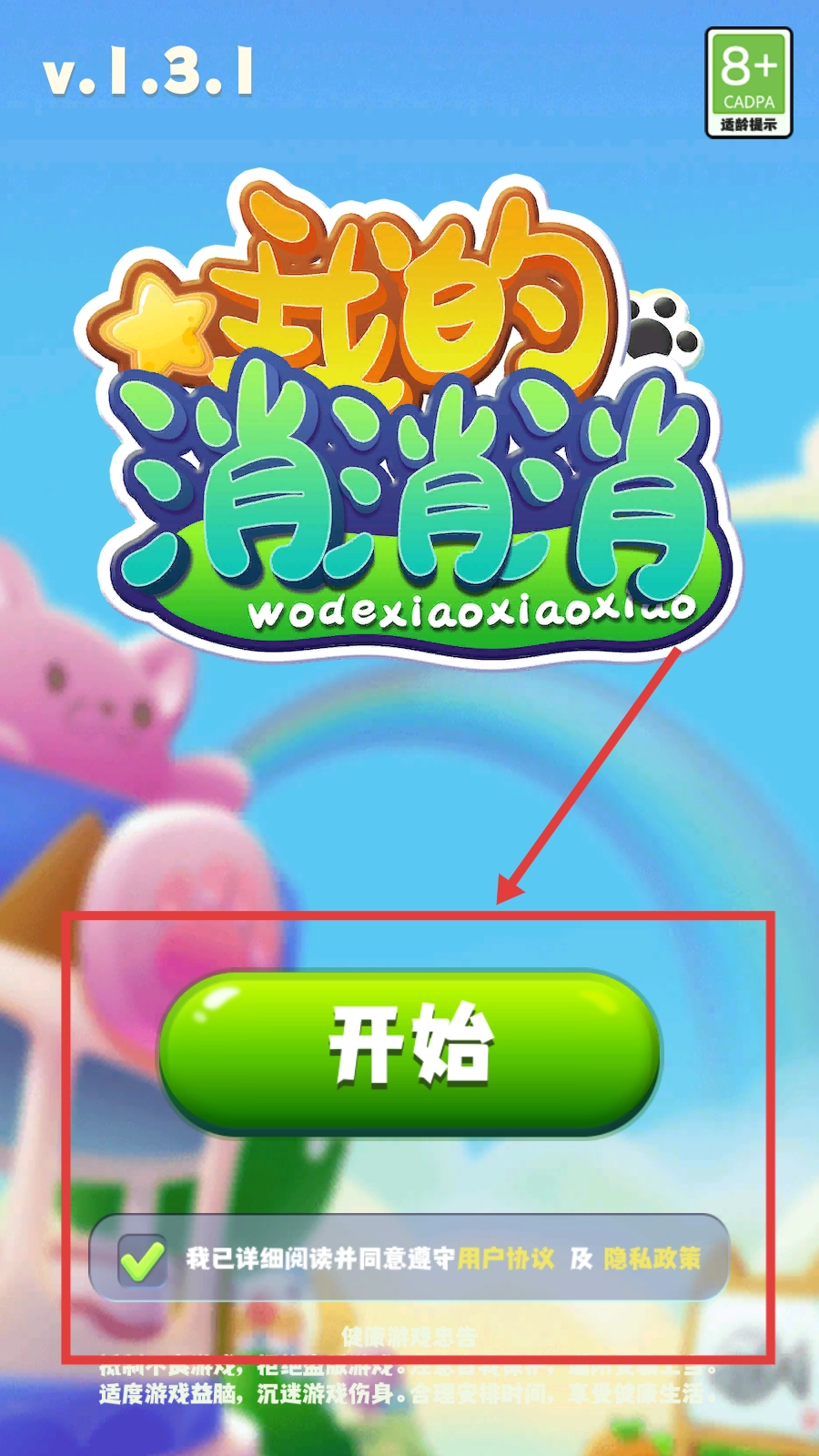 勾选协议后点击【开始】按钮,即可进入【我的消消消】游戏,开启你的消除之旅。