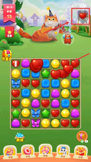 注意观察右上角的爱心糖果,通过消除它们来集齐关卡要求的数量,以此攻克关卡中的难点。