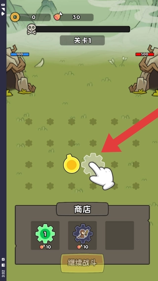 这是一款包含关卡挑战与商店系统的玩法,玩家可点击图示位置进入商店,开展道具等物品的购买操作。