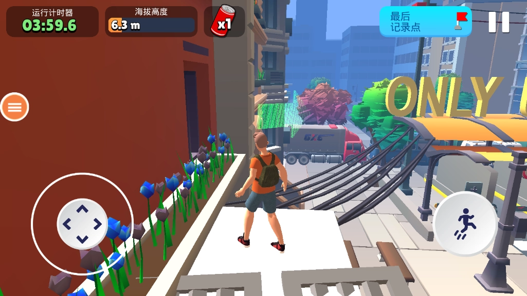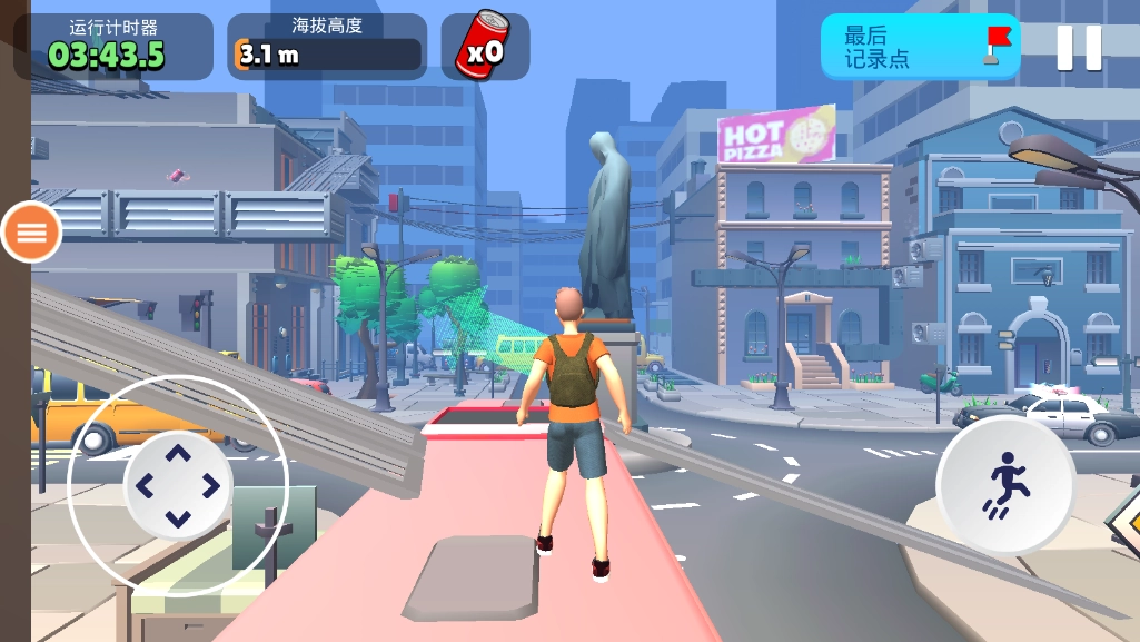 城市舞台:游戏的背景设定在一座充满未来感的城市中,当你不断提升高度,便能将整座城市的风貌尽收眼底,带来极具震撼力的视觉体验。