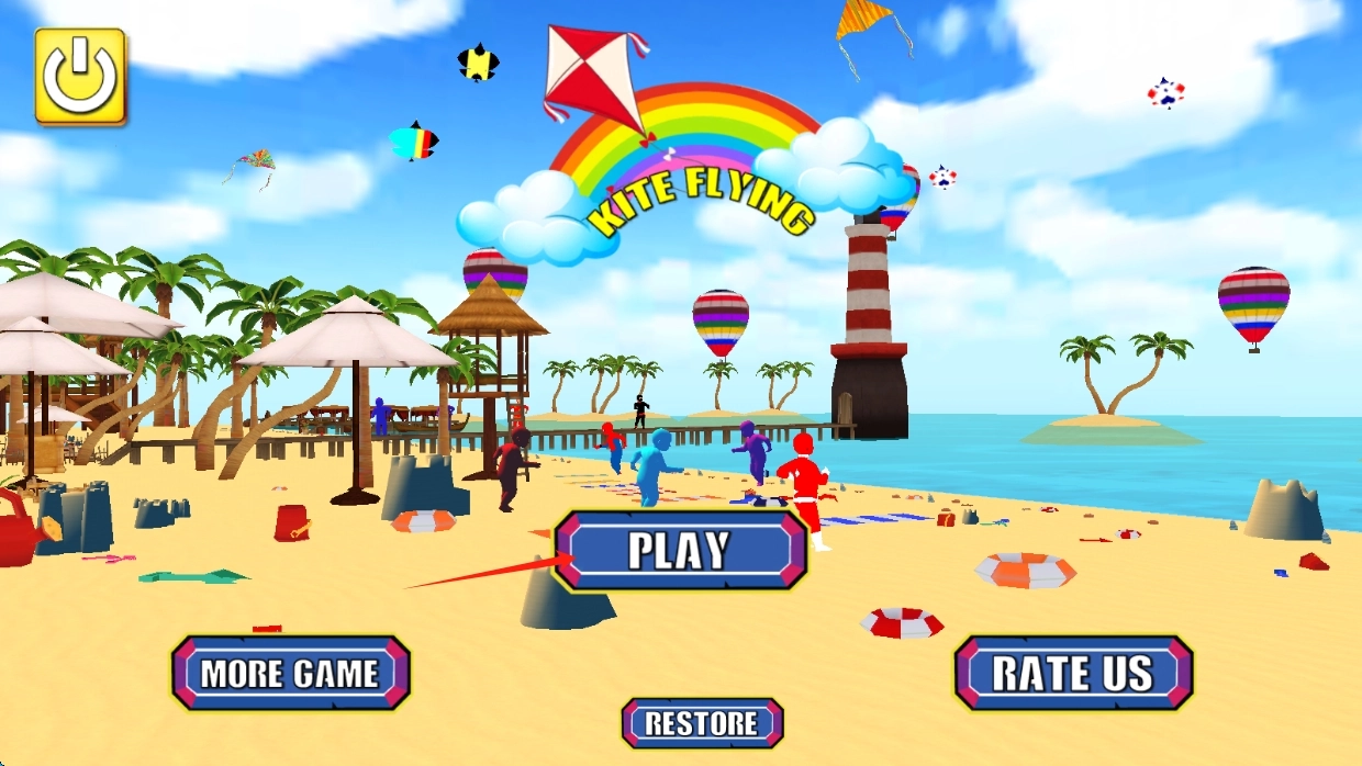 在Kite-Flying游戏的启动界面,按照箭头的指引,点击PLAY按钮开启放风筝的冒险之旅,然后点击开始游戏。