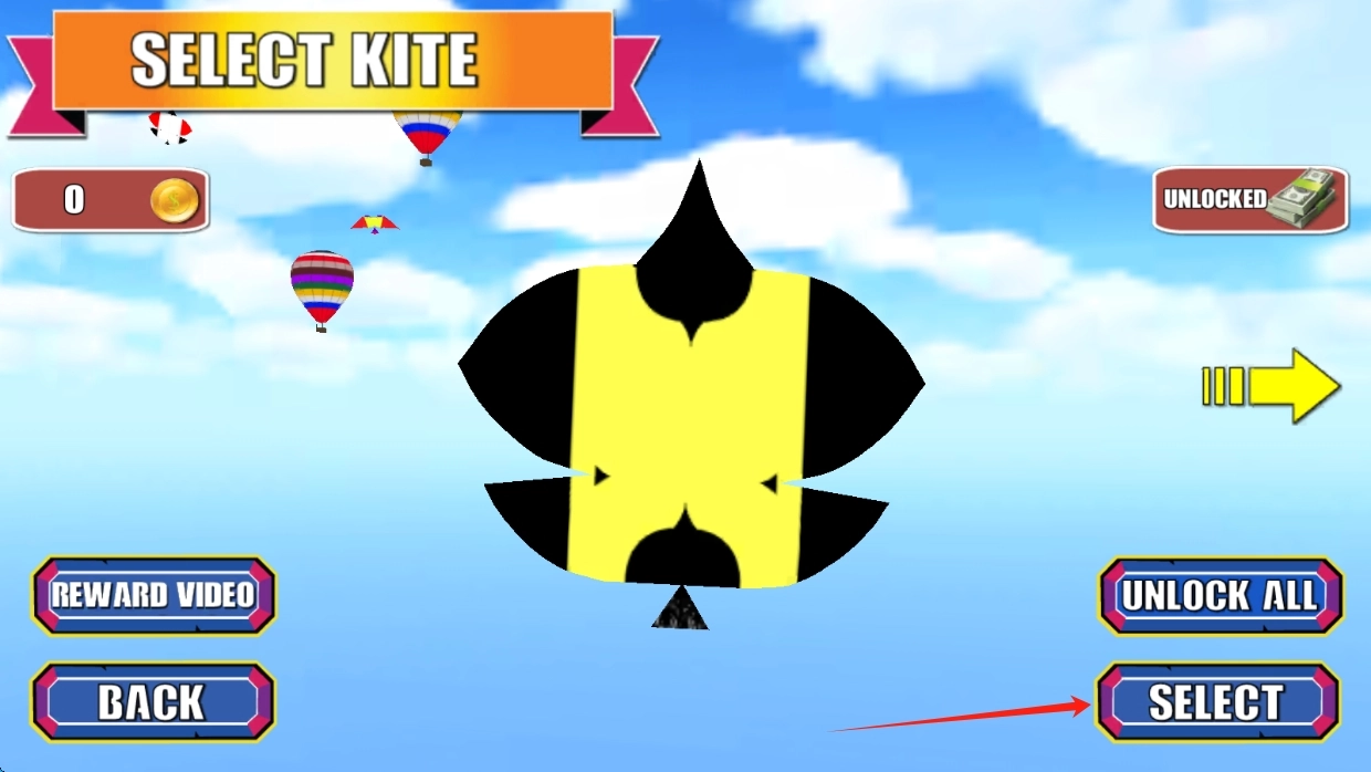 进入风筝挑选场景,按照箭头指引,挑选适配的风筝,确认游戏装备后,点击选中风筝。