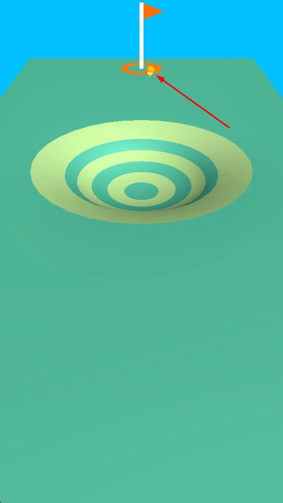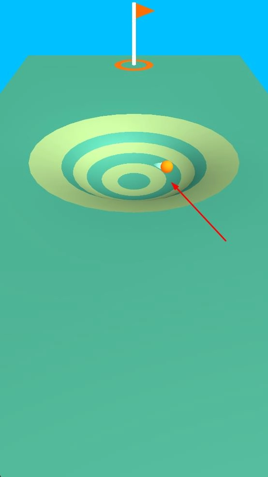 将高尔夫球击出后,它会顺着特定的轨迹滚动,途经设有同心圆的区域,最终目的是使球落入球洞,从而为达成关卡任务筑牢根基。