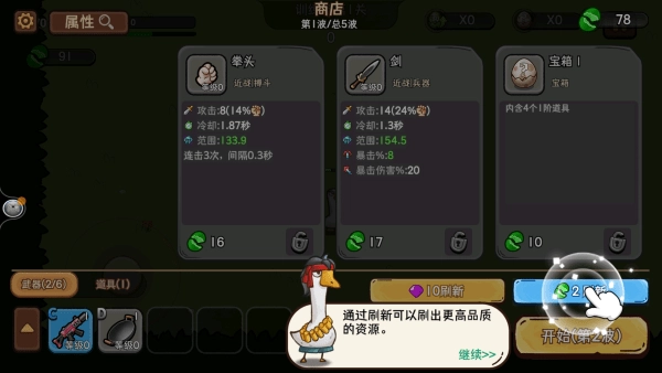 机能英雄是一款射击割草类游戏,你将操控大鹅击败敌人、获取经验,升级后可在商店购买武器与属性。试试自己能通关多少关卡,合理搭配使用装备,还有多样玩法等你体验,快来开启冒险挑战,一起在这里尽情玩耍吧!