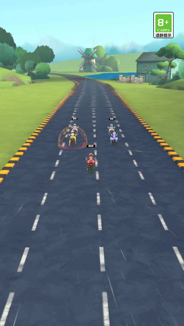 1、赛道中会随机出现道具,拾取并使用道具能帮助玩家在竞速中占据优势,在比赛中能获得更好的成绩。