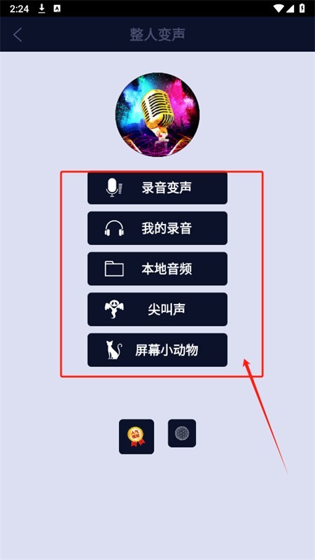 3、点击“整人变声”功能,不仅能够进行录音并实现变声效果,也能选用本地音频进行相关操作。
