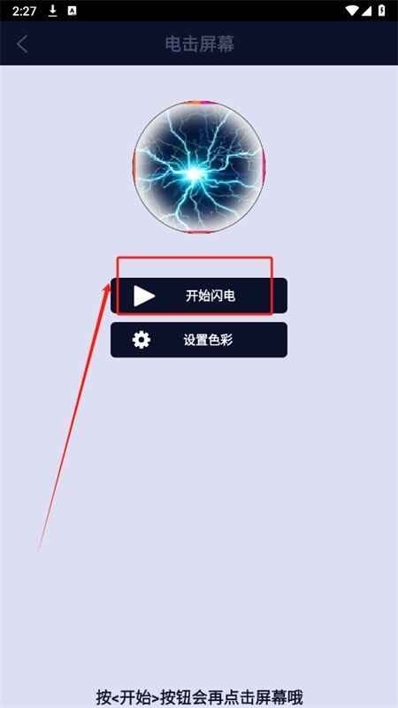 5、选择对屏幕进行电击操作,接着点击“开始闪电”按钮。
