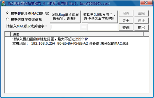 MAC地址查询扫描器是个功能强大的MAC工具,能够通过网络辅助进行设备识别,主要用于电脑、路由器/可管理交换机/其他智能的网络设备、IPTV机顶盒、广电的CableModem/CMTS/双向机顶盒、蓝牙等通讯设备厂商识别。