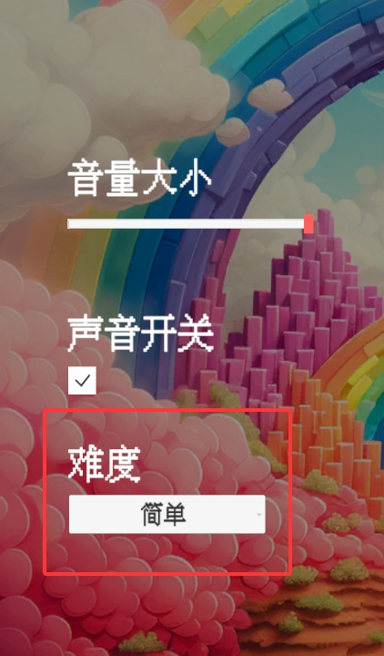 点开设置里面有音量和游戏难度挑选。
