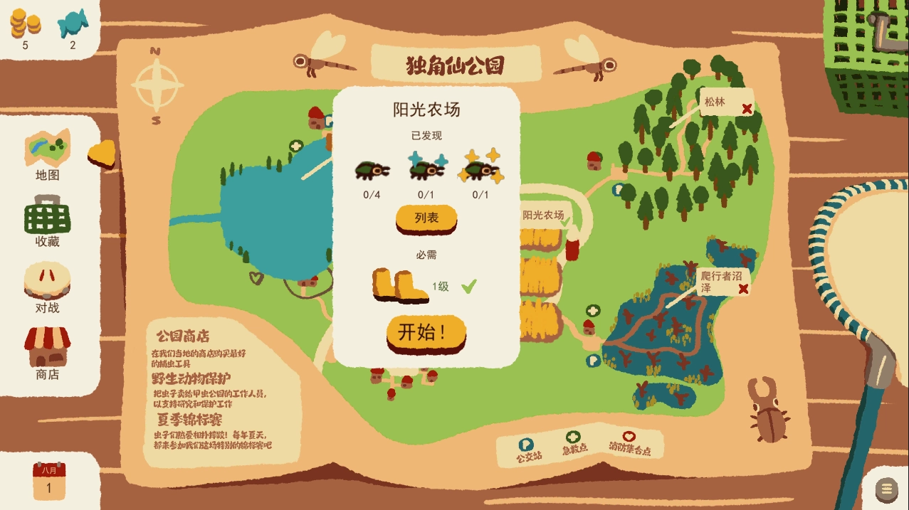 可以在公园的不同区域利用装备来捕捉虫子,再依据昆虫的习性挑选合适的诱捕方法,将收集到的虫子放进虫舍里。