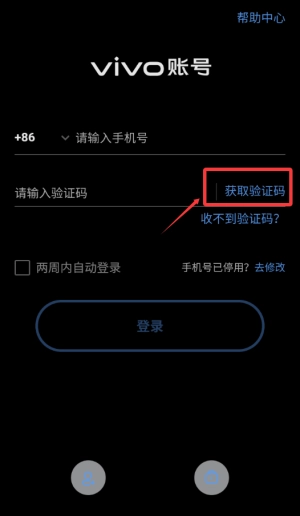 第二步点击获取验证码,然后等待收取验证码。