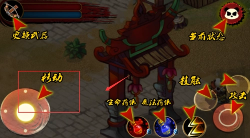 熟悉屏幕下方功能面板的布局,掌握技能释放和道具使用的操作方法。