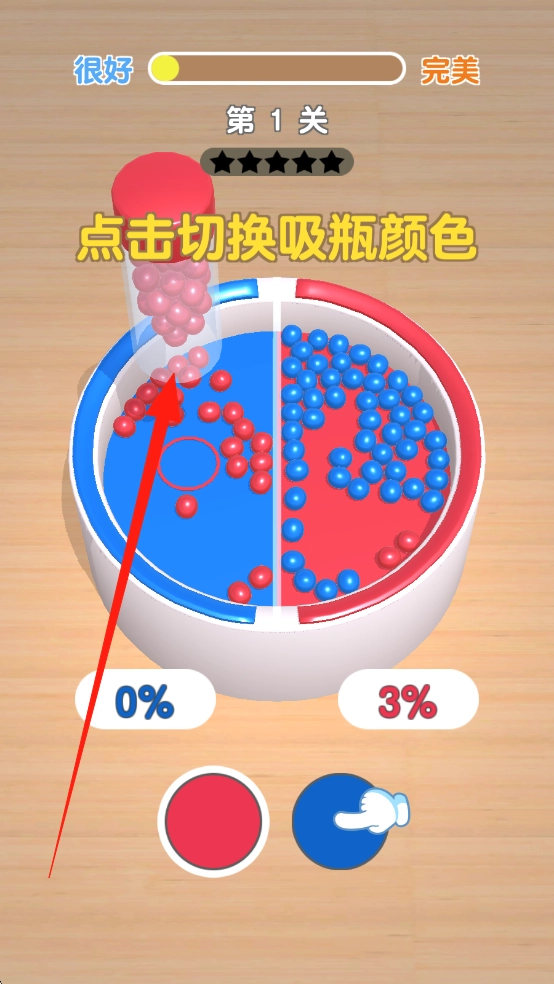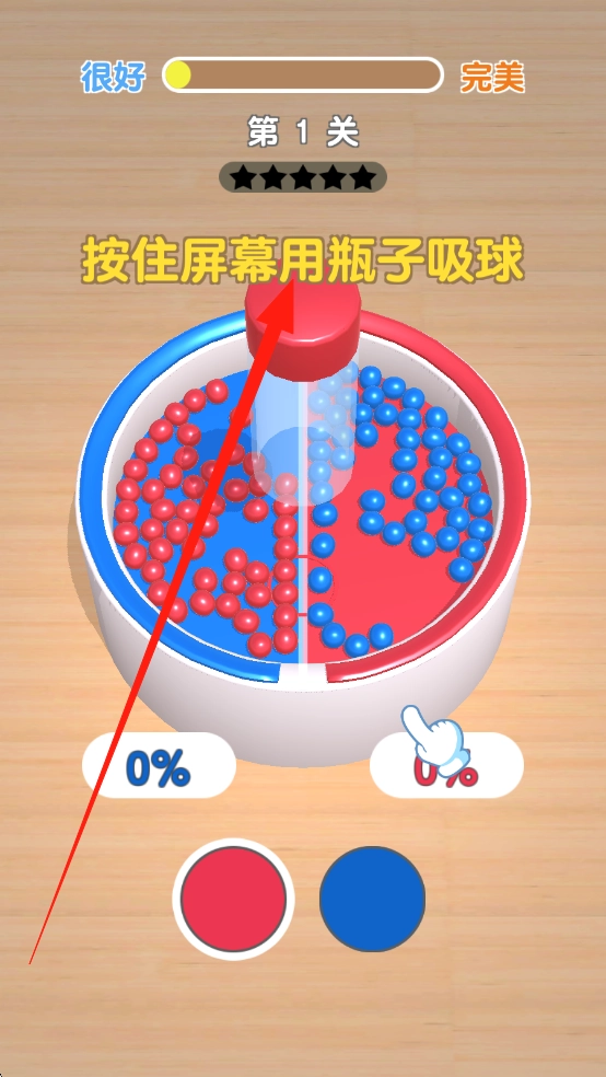 操作控制说明如下:点击屏幕可选中试管,滑动屏幕能调整观察视角,双击屏幕实现快速移动,长按屏幕可查看提示信息,通过组合运用这些操作来完成复杂的分球任务。