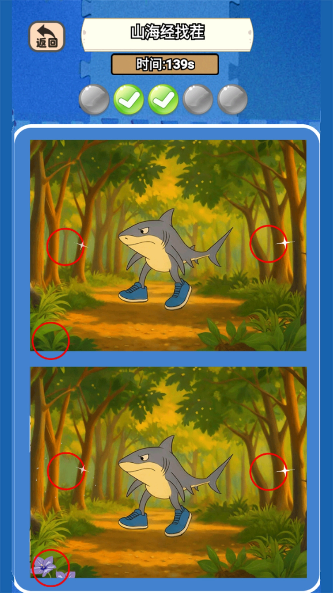 仔细对比两张山海经主题的场景图,认真查找并标注出画面里隐藏的细节差别,以此完成该关卡的挑战。