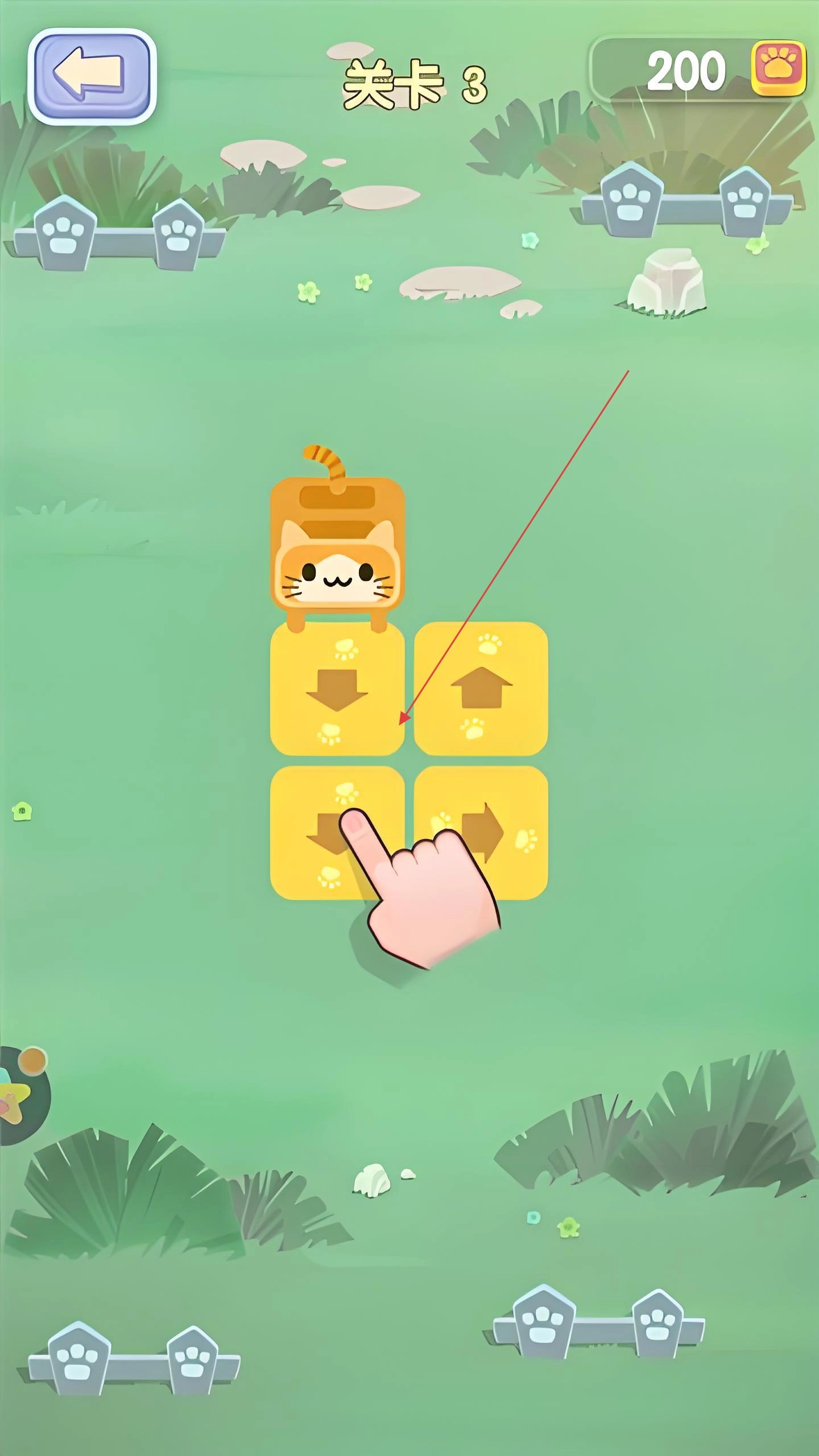 一笔画闯关的玩法是这样的:以经典一笔画作为核心规则,融入猫猫移动的元素,玩家在规划路线的过程中既能体验到充满趣味的挑战,又能锻炼自身的逻辑思维能力。
