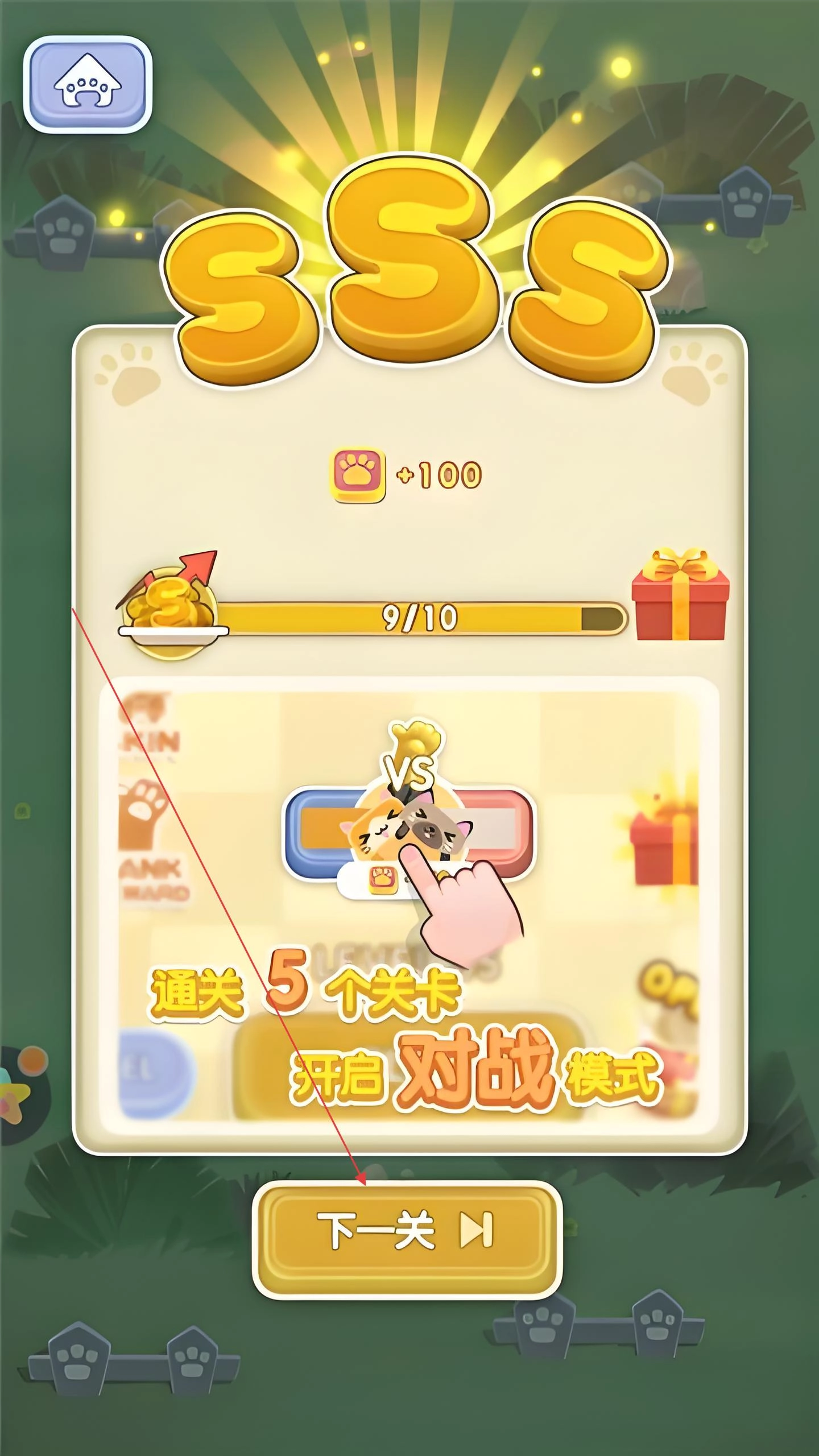 成功填满所有格子即可完成关卡,系统会依据你的用时长短和路线完美程度给出星级评分。获得的星级评分能帮你解锁更多不同风格的主题场景以及各式各样的猫猫外观,还能让你挑战难度更高的关卡。