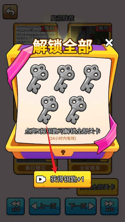 然后可以点亮五把钥匙。