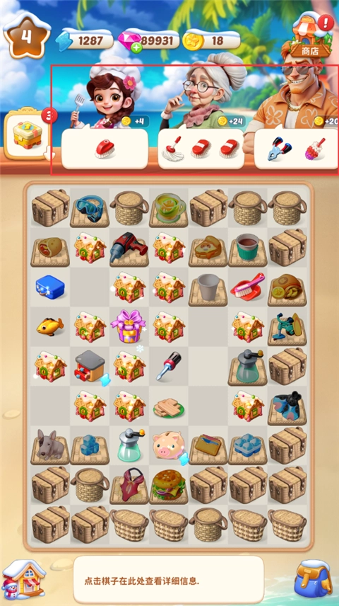在界面里查看任务要求的物品,把正确的物品放进格子里就能得到金币奖励。