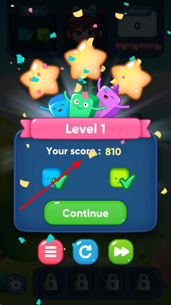 只要达到关卡要求的目标分数就能顺利通关,每天登录游戏后转动转盘可以领取道具奖励,这些奖励能帮助你更好地挑战难度更高的消除关卡。
