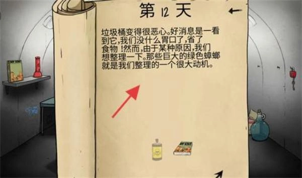 可以选择用书本来拍打蟑螂或蜘蛛,蜘蛛相关的剧情要求玩家在避难所制作出空水瓶,前期只要喝两次水就能完成这一条件。