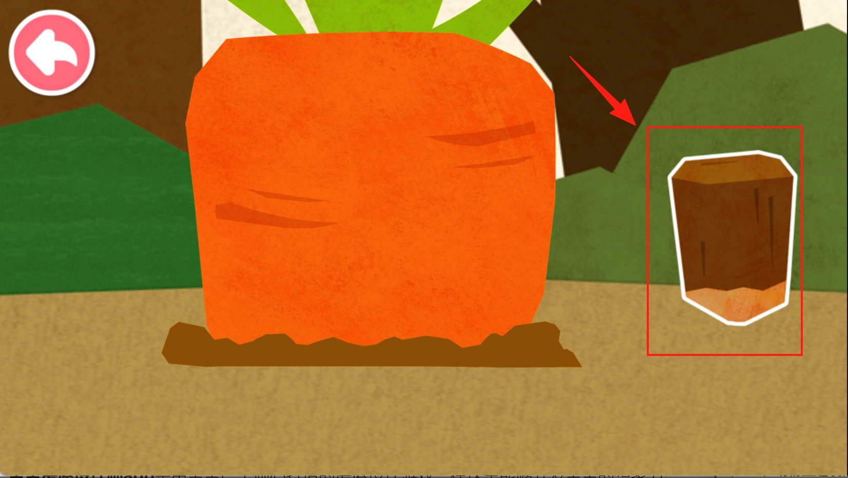按照提示一步步来操作哦,用剪刀把萝卜的根须修剪一下,要记得把材料摆放整齐呀。