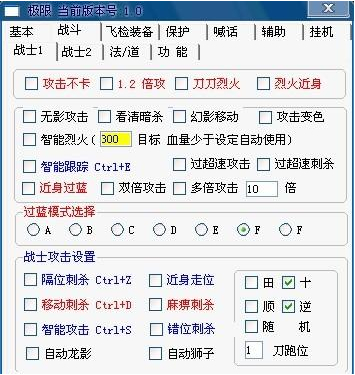 传奇逆天辅助是目前唯一一款能够做到所有版本三种职业。战士出刀能力,法士道士魔法能力。 支持面广,功能完善,及时更新。战士无限刺杀、无限暗杀、暗杀挖地、多倍攻击、刀刀烈火、移动加速、自动野蛮、飞装备等所有人性化功能;法道的无限魔法、砍+冰、一步三格、过红蓝字提示和其他3职业通用功能,比如:超级保护、自动买药、移动加速和攻击加速、飞检装备等。