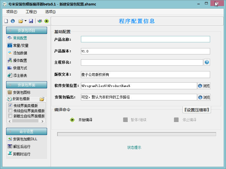 4、新增在安装包制作工具中有菜单栏选项"使用向导"一一对应安装包的界面步奏填写相应参数引导新手完全傻瓜式的操作…(最后点编译按钮即可)