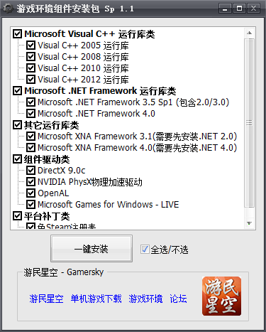 游戏环境程序集合傻瓜式安装包正式版v1.1更新: